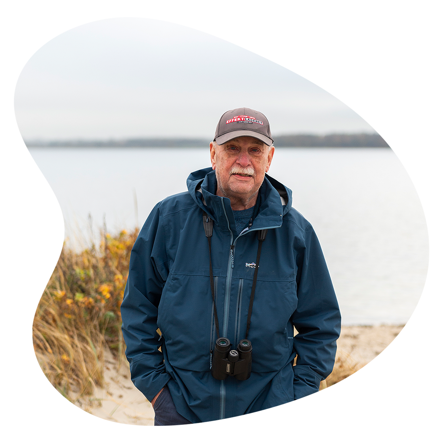 Ole Flensted er næsten 80 år. Han er mangeårig frivillig, og har hjulpet med alt fra ålegræsudplantning i fjorden til udlægning af gydegrus i å-løbene. For ham er der ingen tvivl: Naturen er med til at holde ham i live, og vi er nødt til at give tilbage til den, så den også kan holde de næste generationer i live. Derfor har det også været vigtigt for ham at støtte naturgenopretningsindsatsen økonomisk.