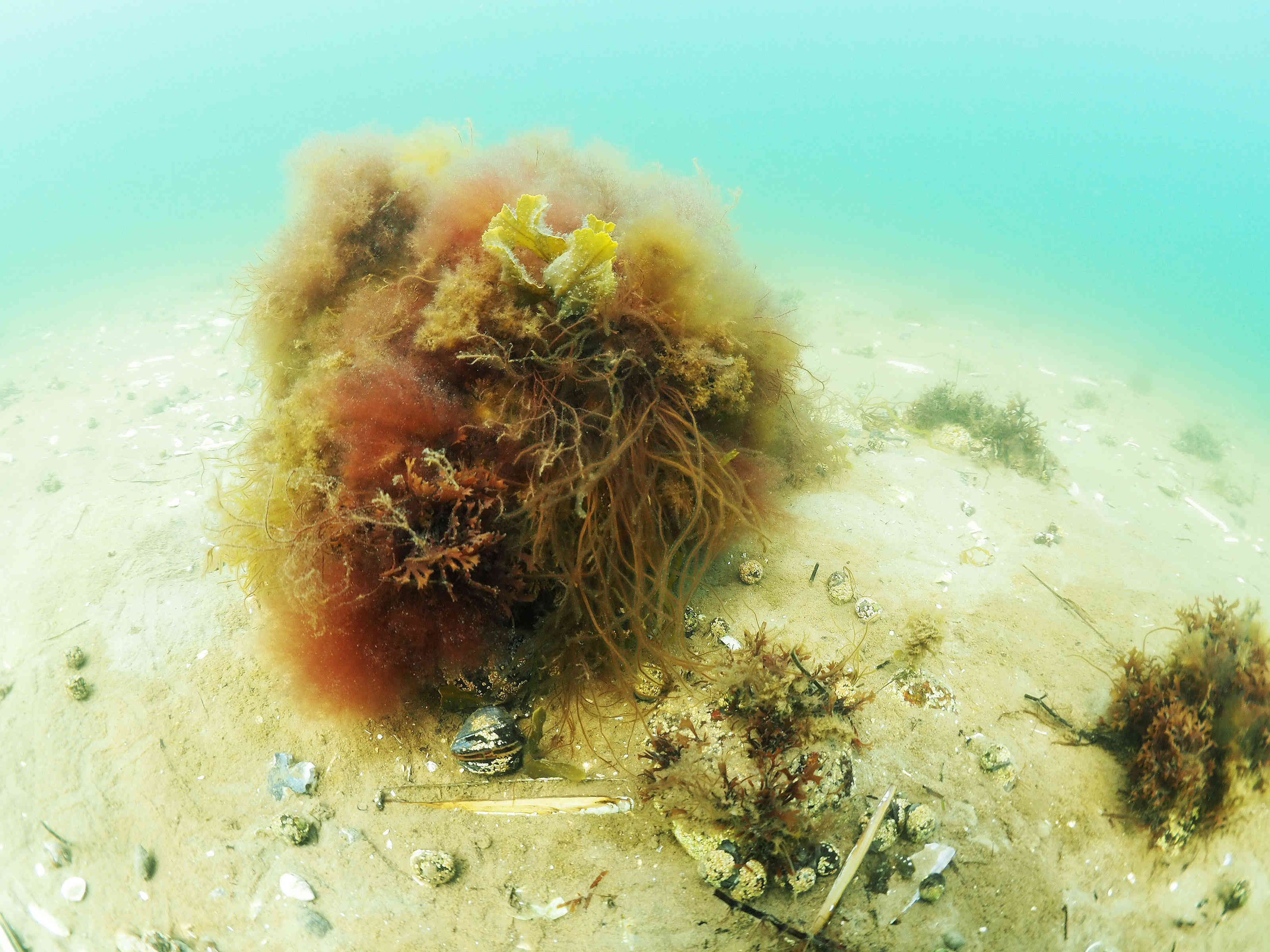Det er en virkelig glædelig nyhed. Og det er det også, at fjordbunden flere steder består af gode, faste lag af sand og ler. Det giver nemlig gode forudsætninger for, at stenene bliver liggende, hvor de skal – og at ålegræsset kan brede sig omkring dem.
