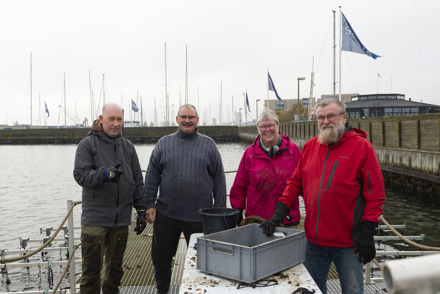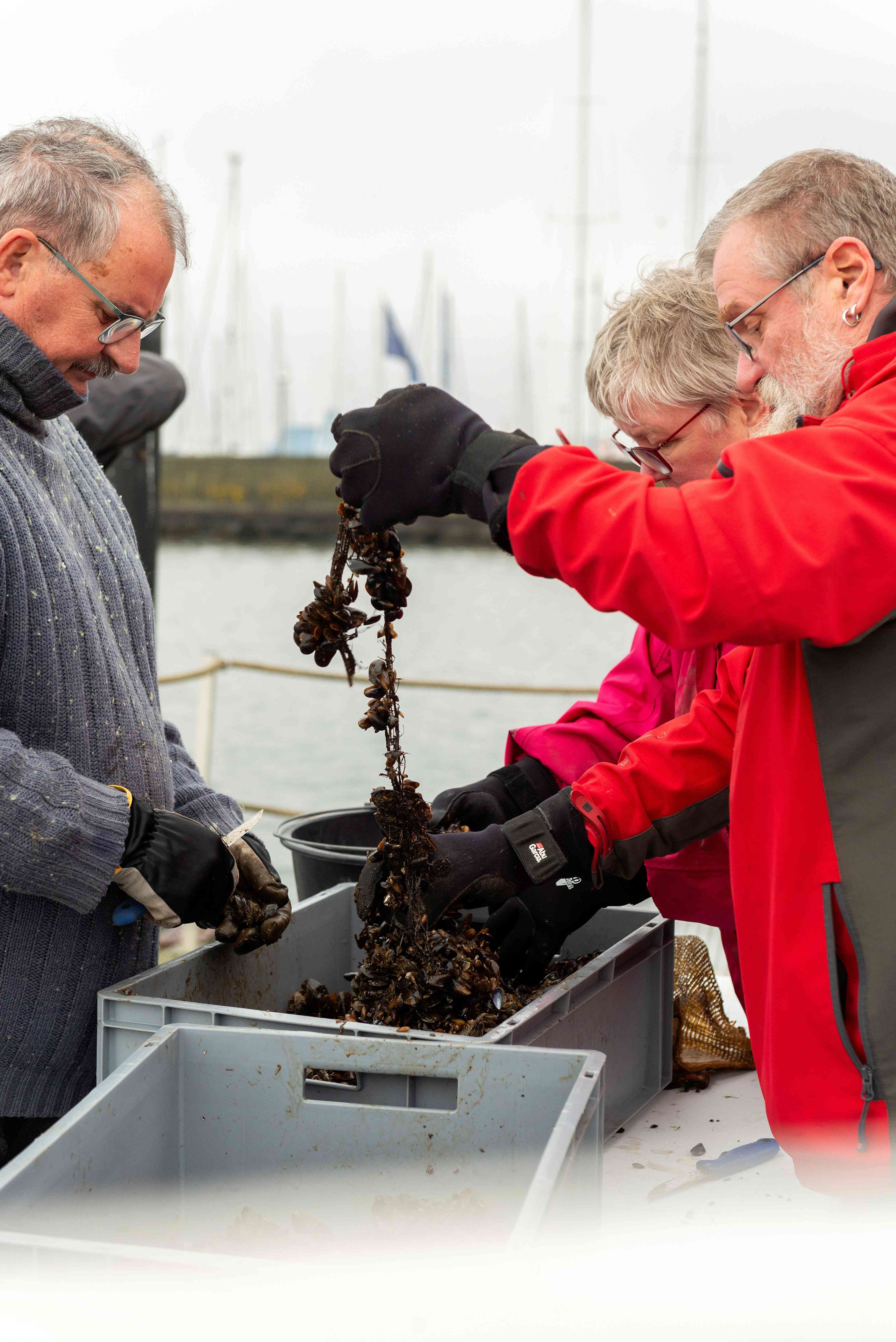 De er alle en del af Horsens Fjordhave, som til dagligt dyrker blåmuslinger på liner i Horsens Lystbådehavn.
