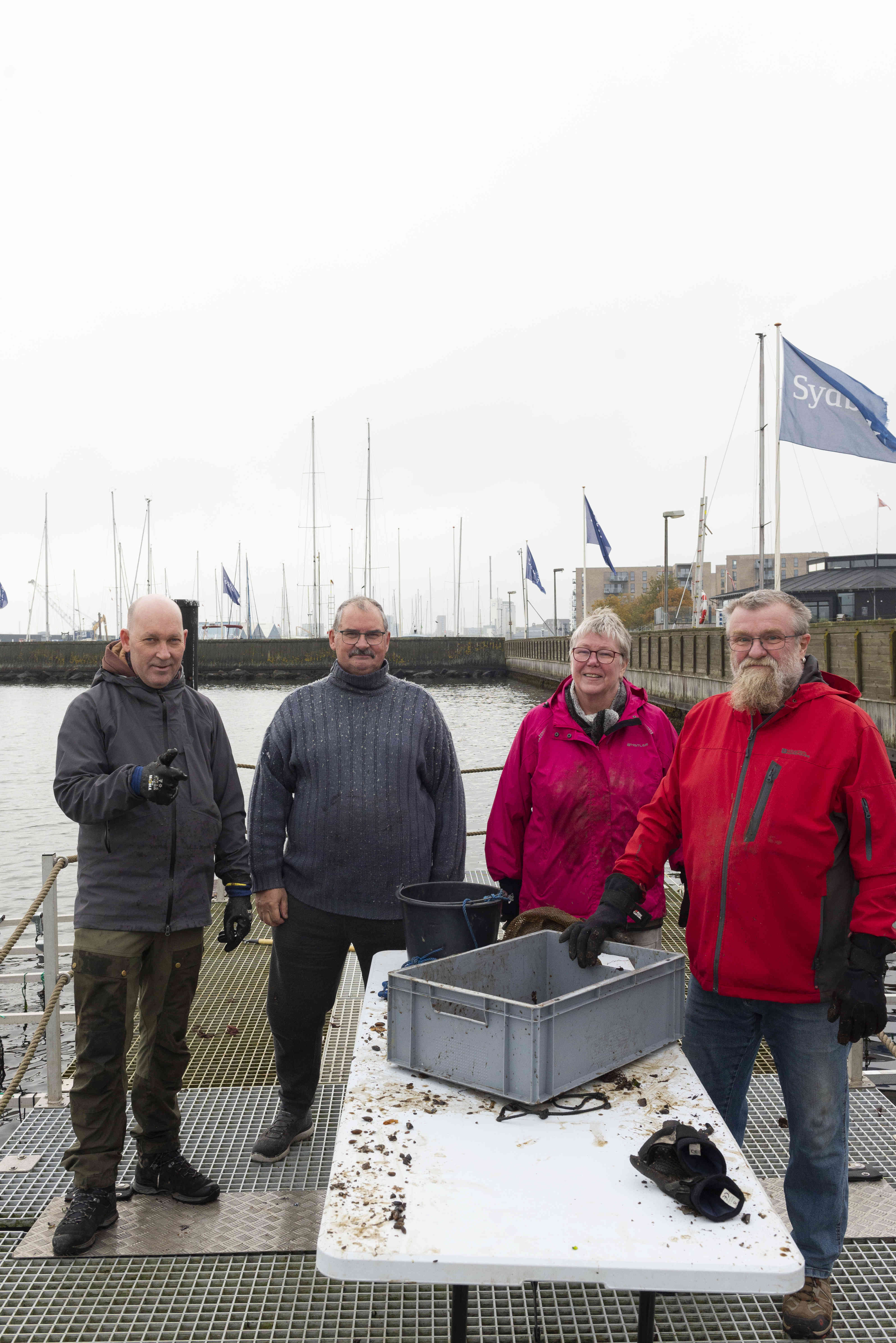 Birthe, Ole, Jesper og Per gav tirsdag eftermiddag en hånd til Horsens Fjord.